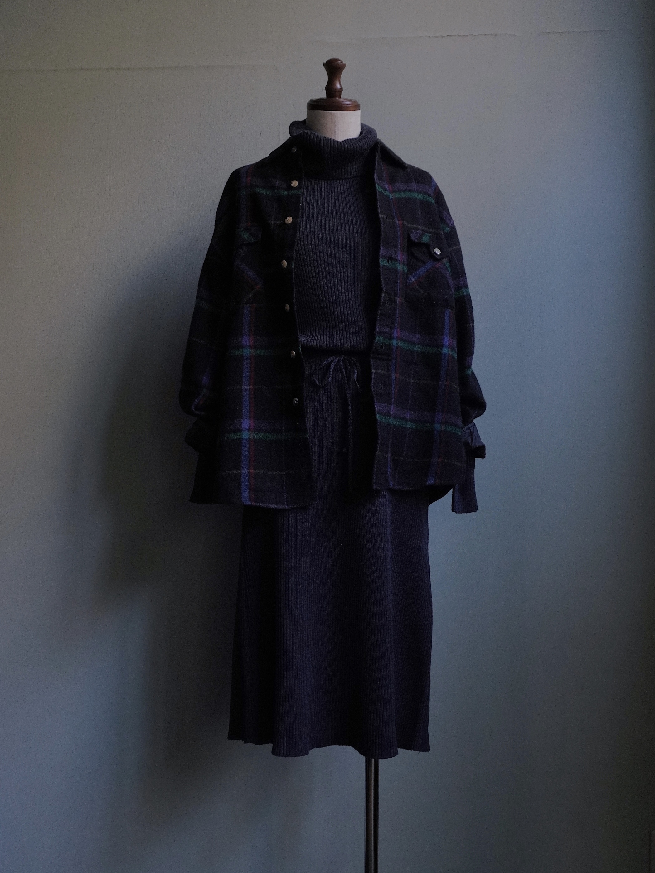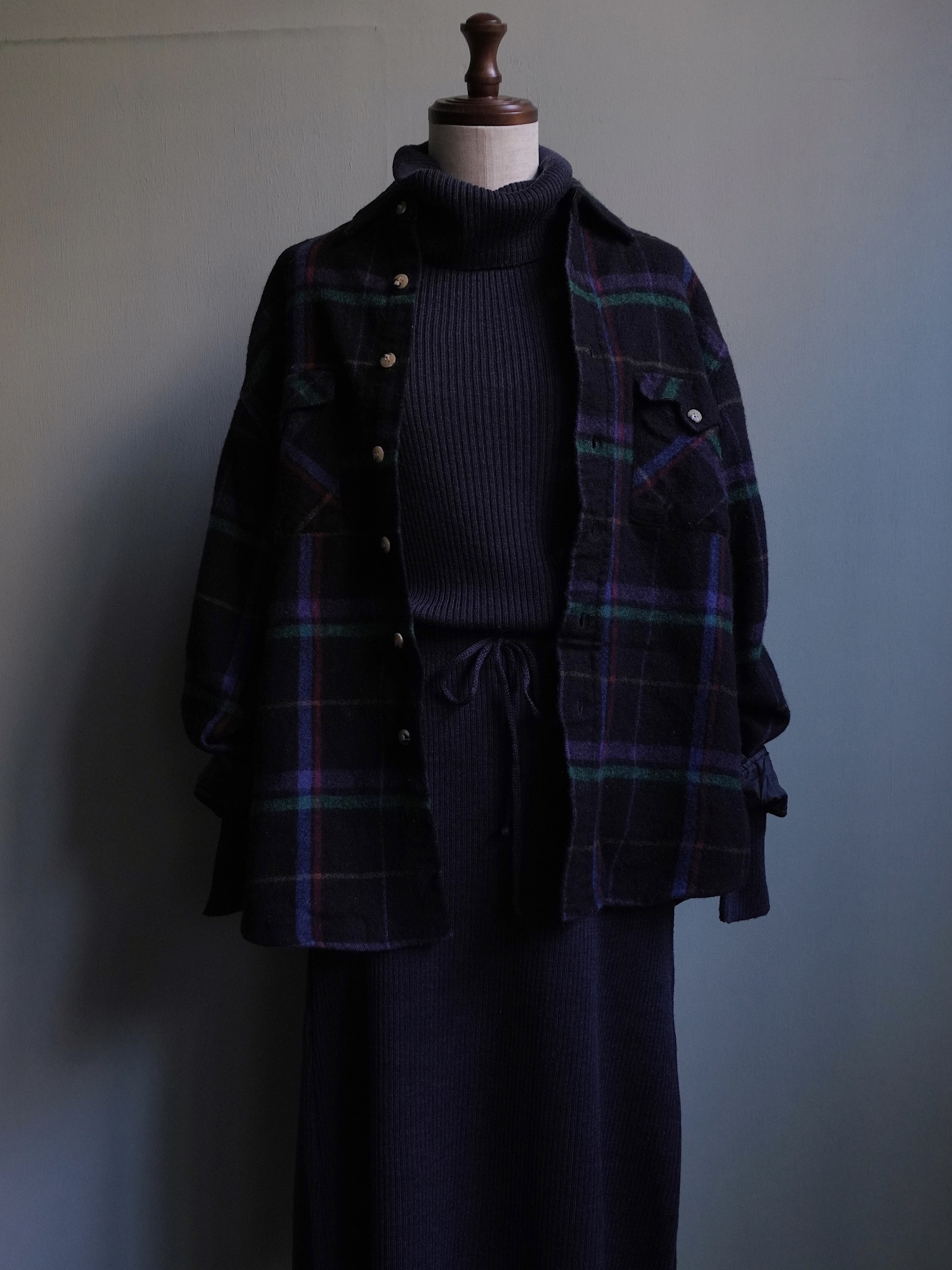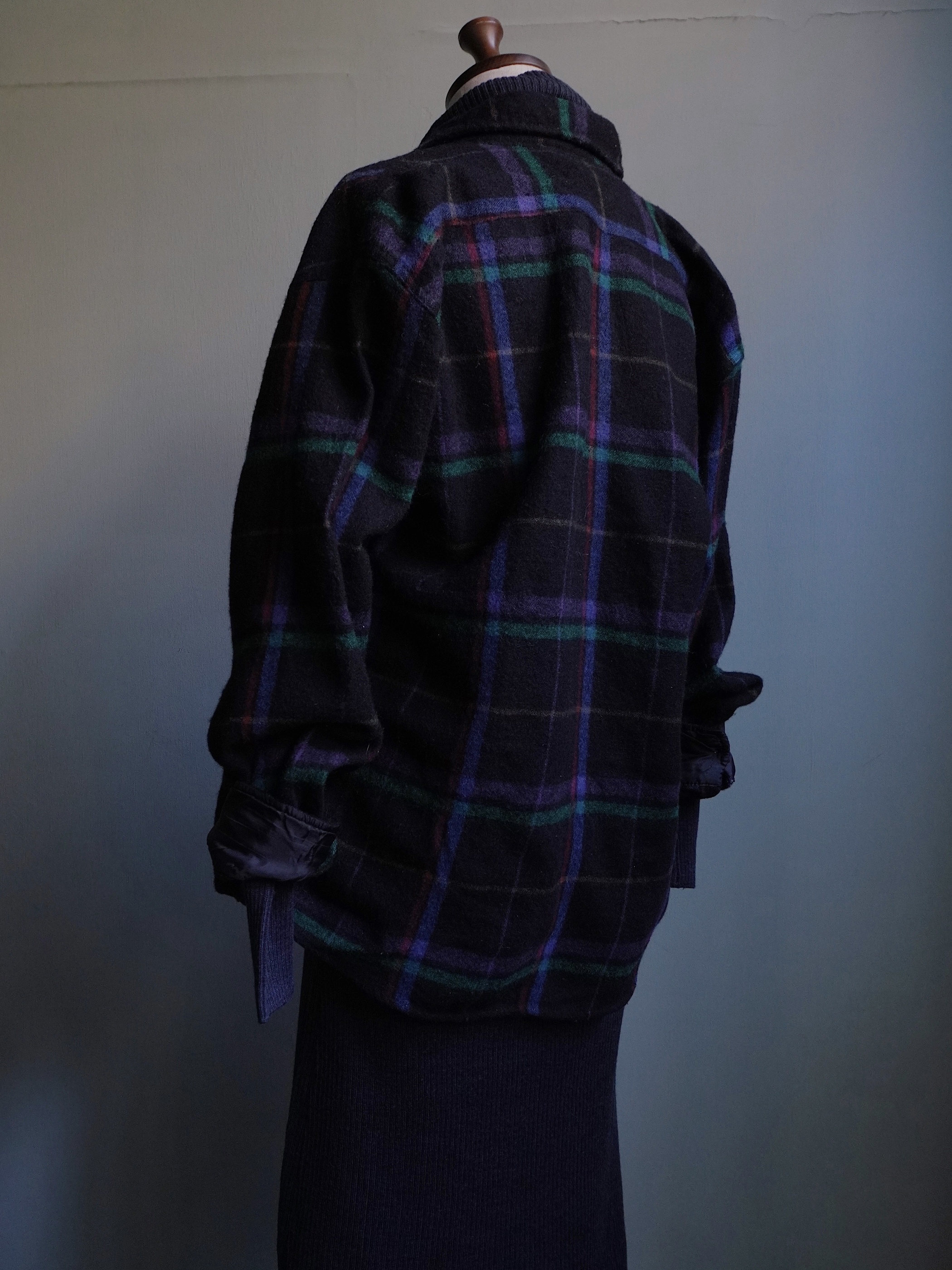 ほんのり紫がかったブラックベースのウールシャツ
