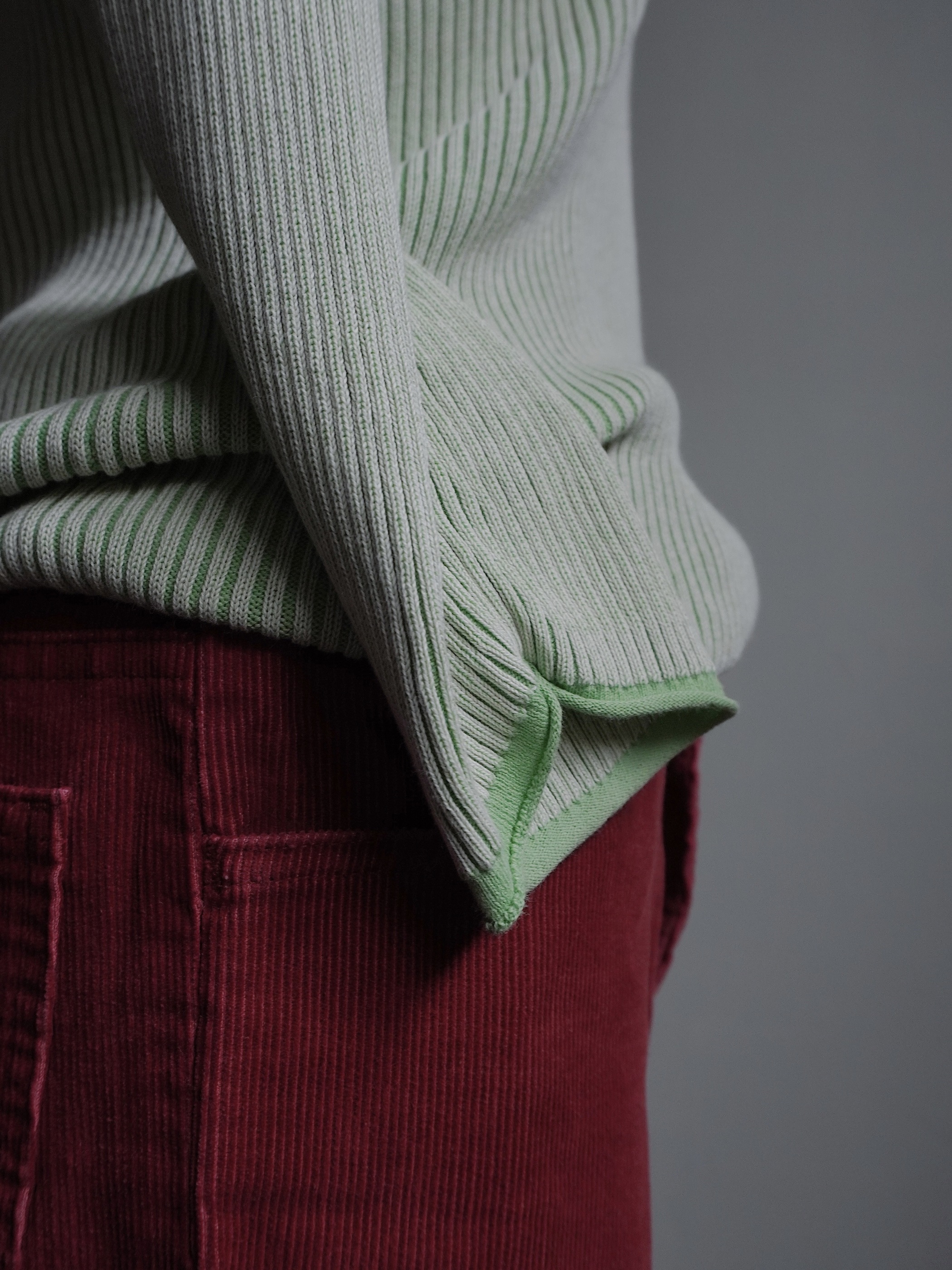 裾と袖口はロールエッジなのも素敵です