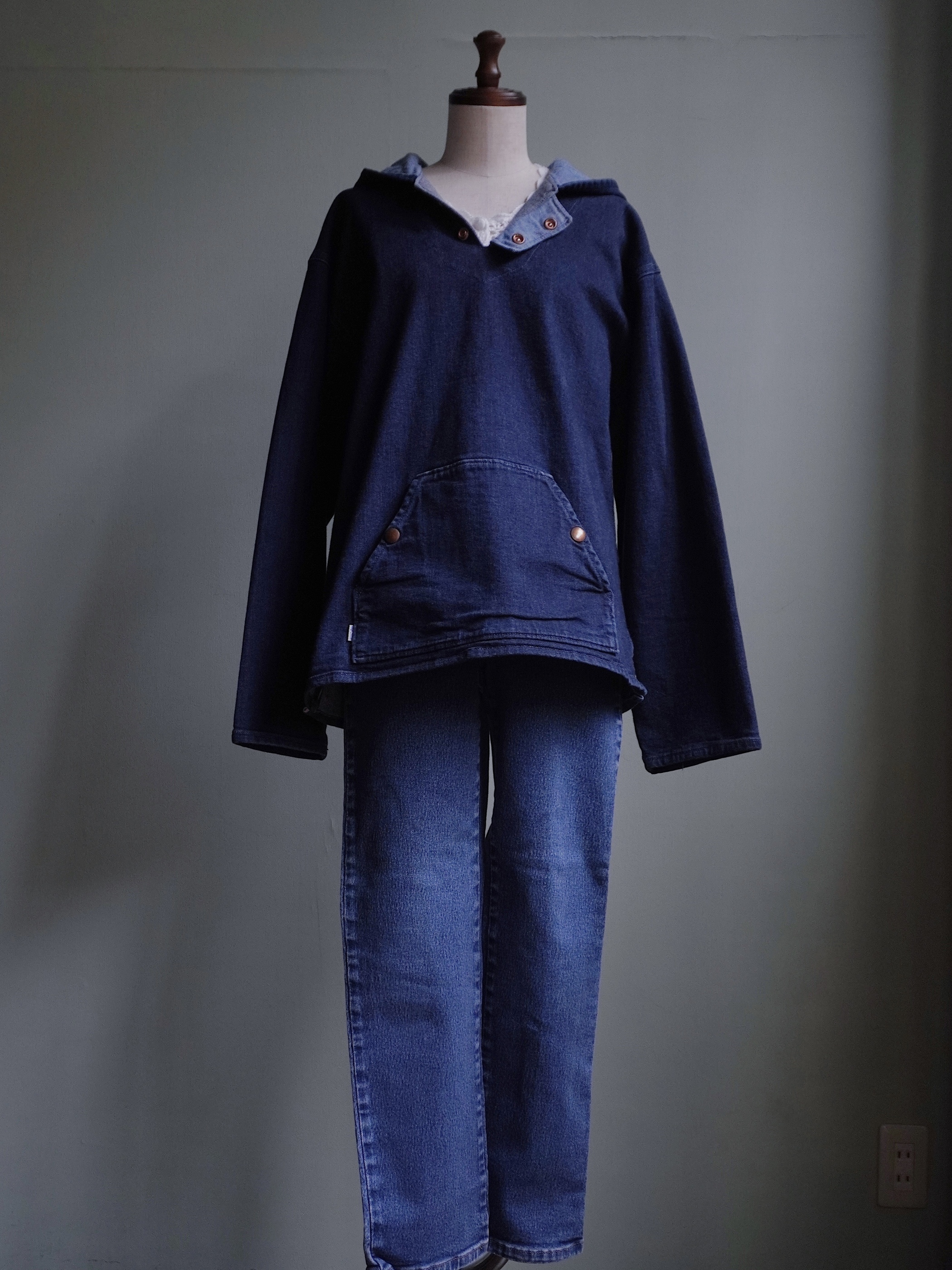 ハンドメイドのデニムプルオーバー