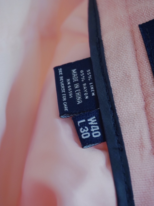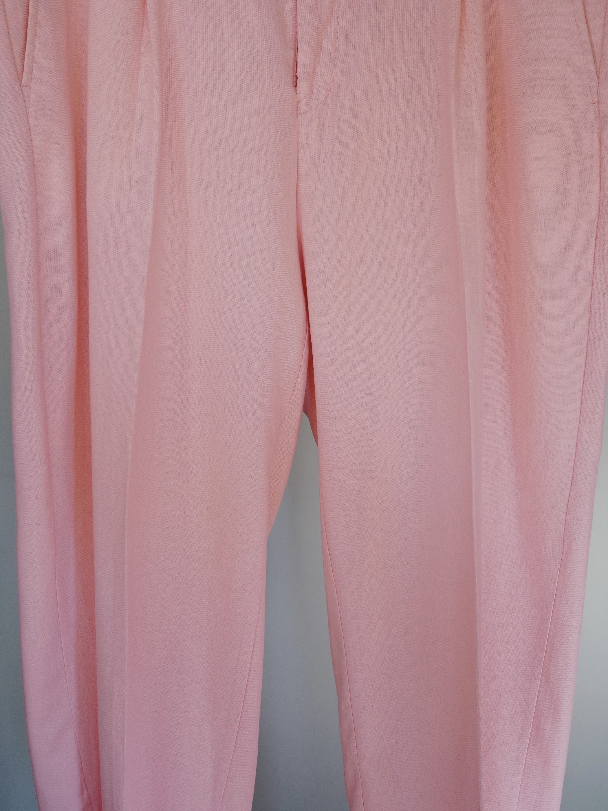 ペールピンクのリネンレーヨンスラックス