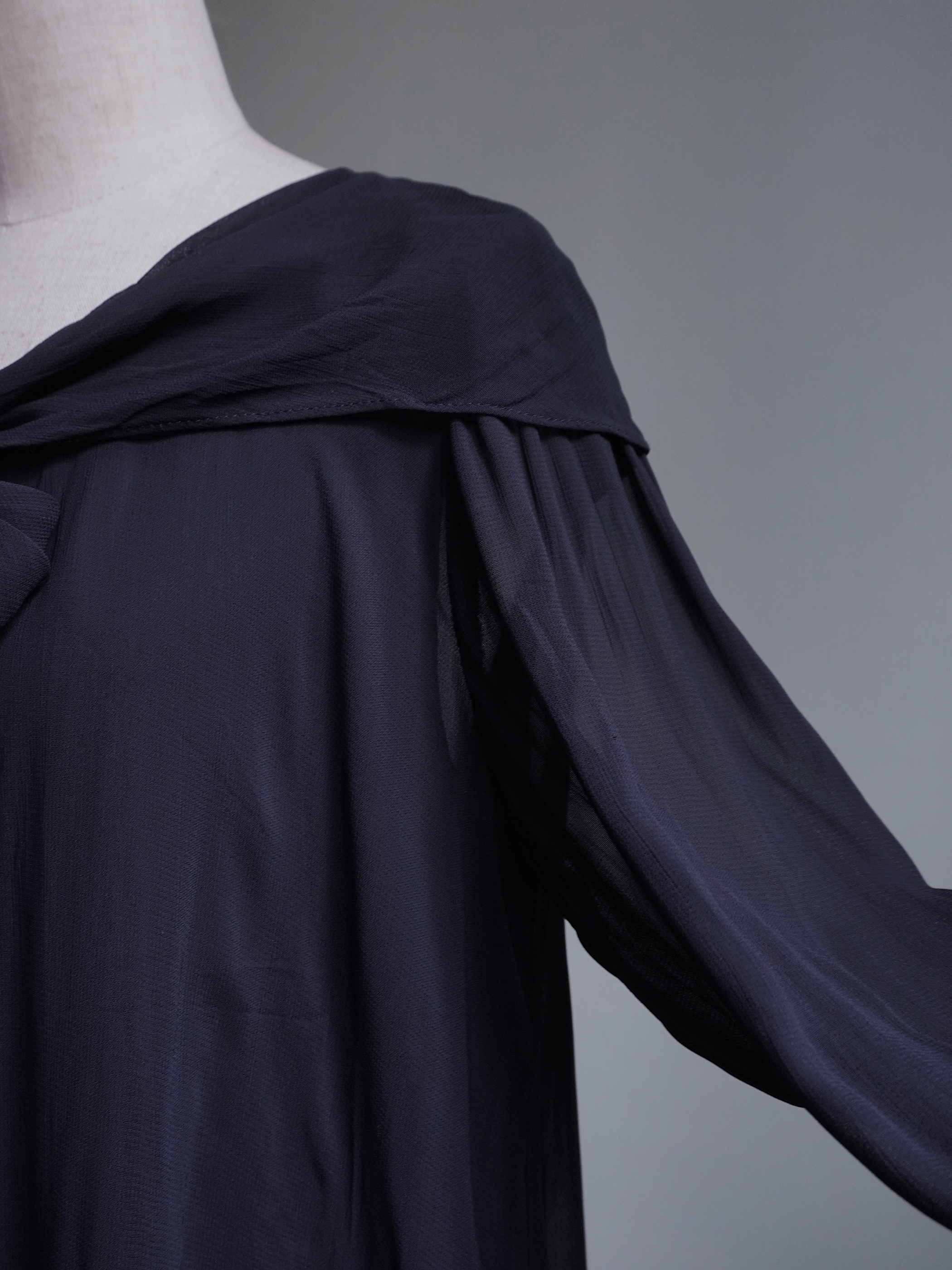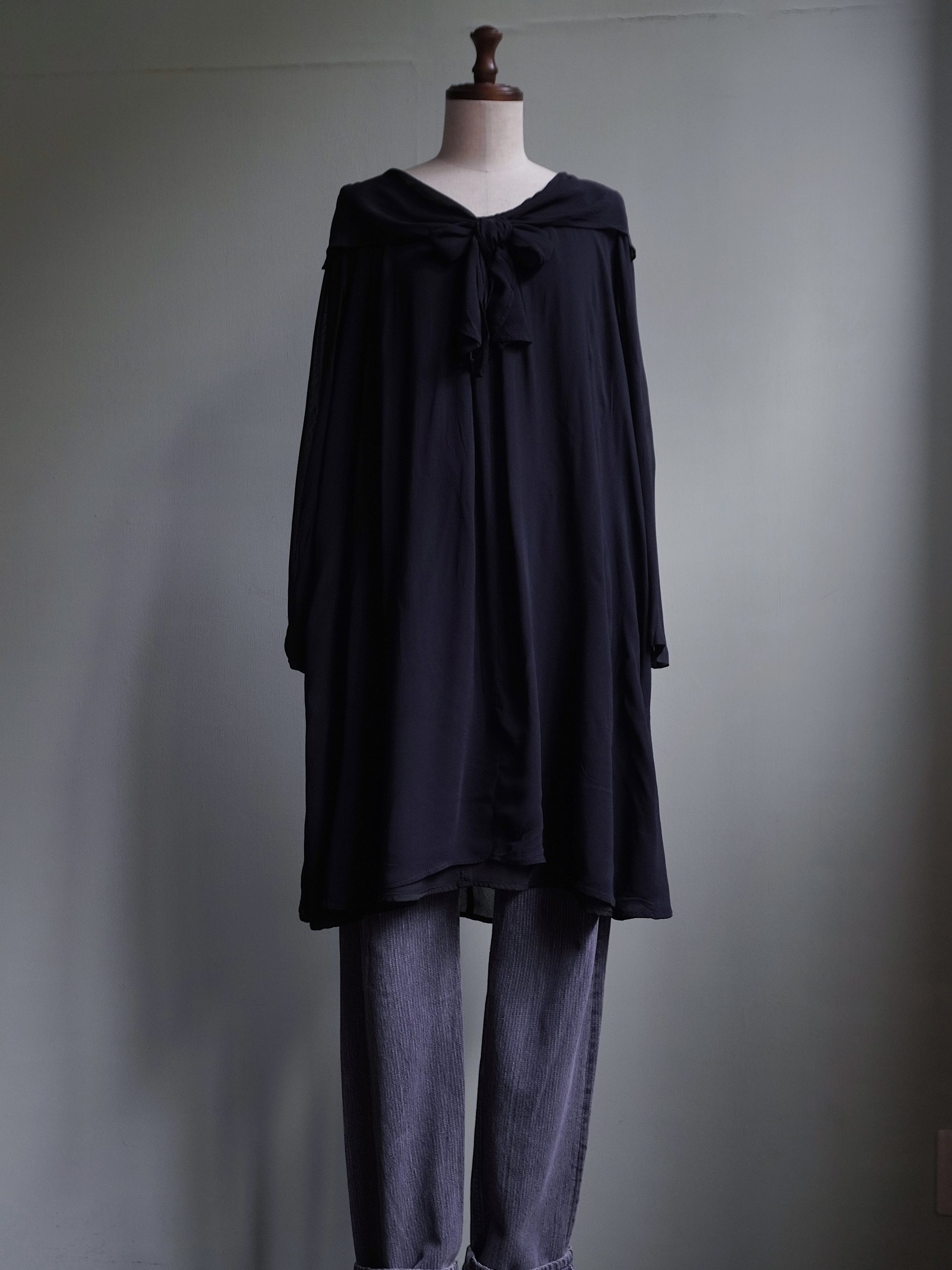 こちらの商品はused品となります。リボンで隠れてあまり目立ちませんが、フロント上部にリペア跡がございます。右袖口に小さなダメージがございます。