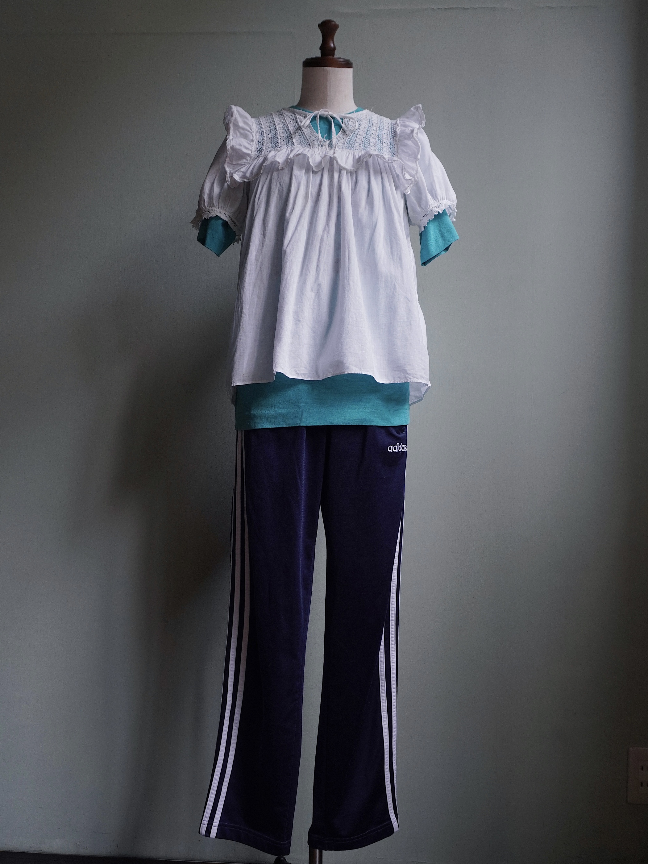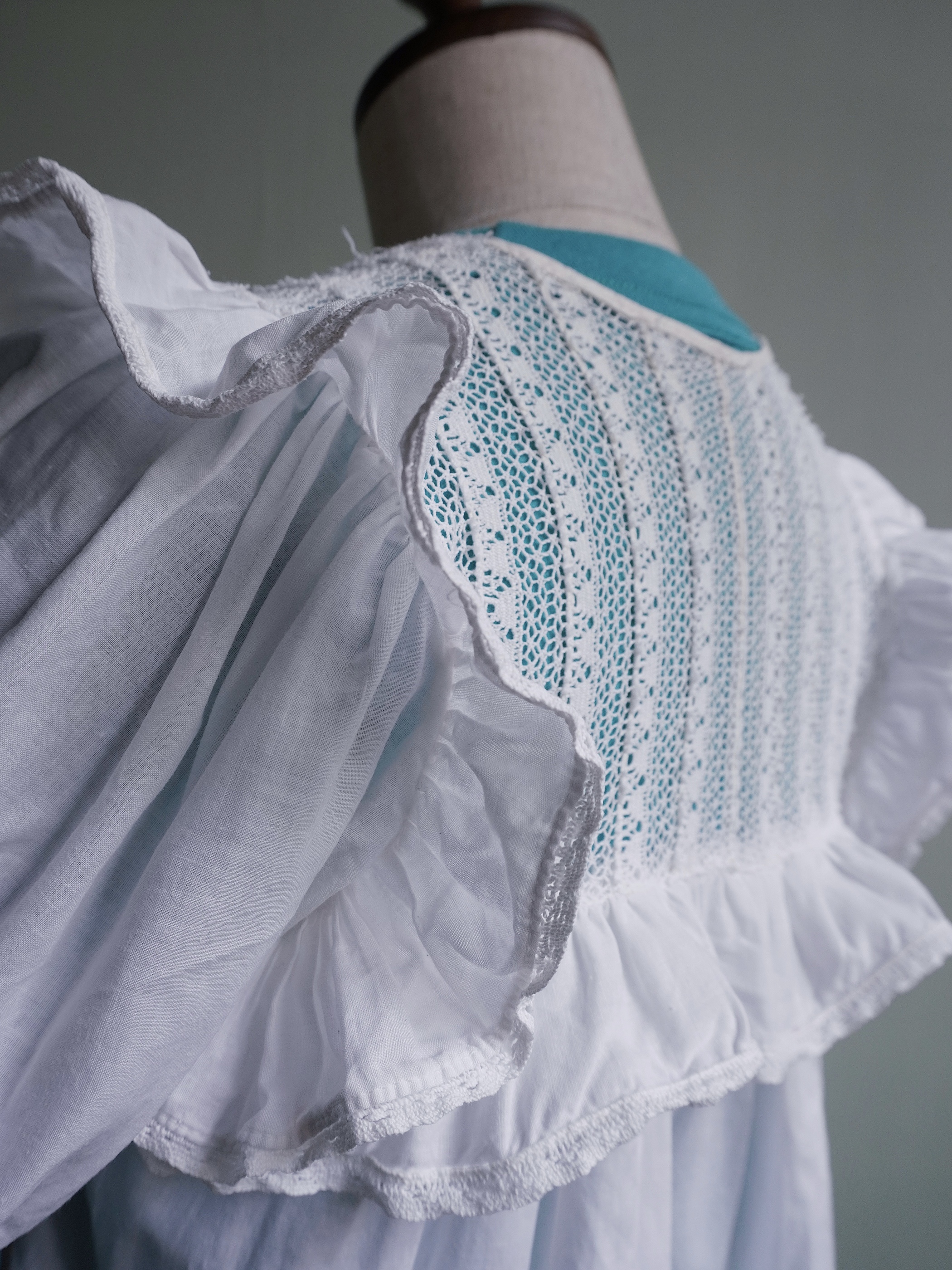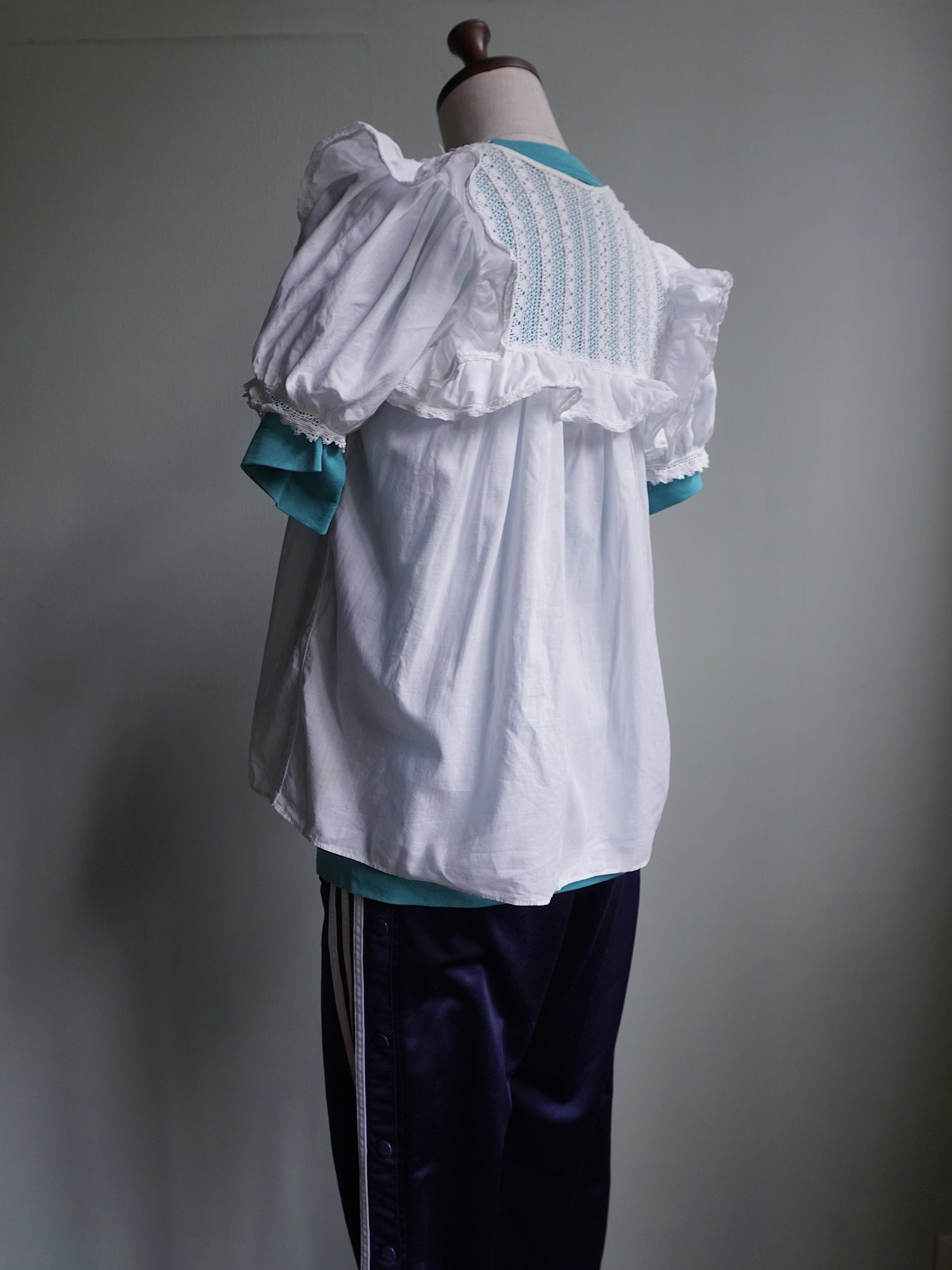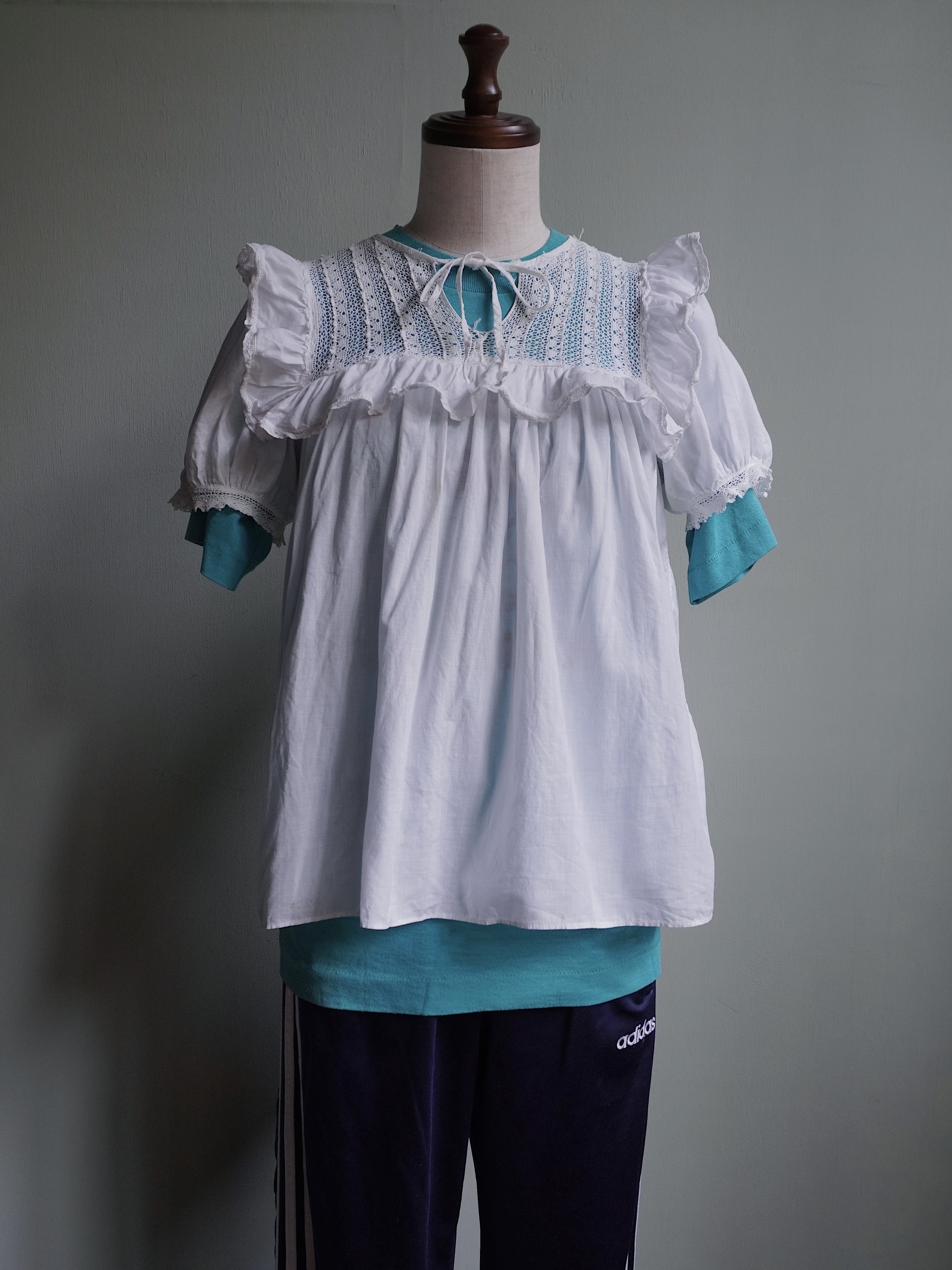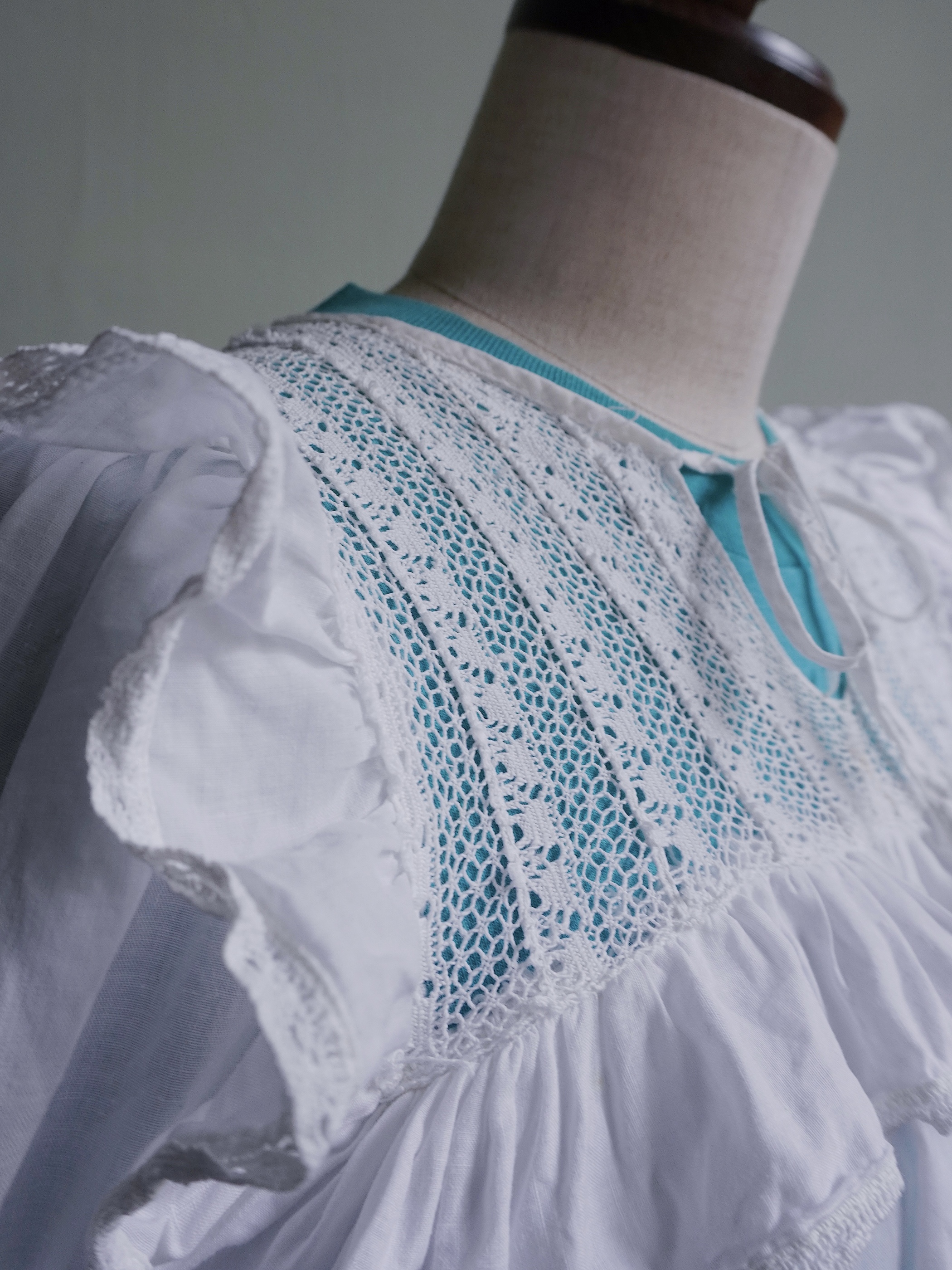 こちらの商品はused品となります。胸元のレースにリペア跡がございます。所々に汚れもございますが、年代を考慮いたしますと比較的奇麗な状態かと思われます。